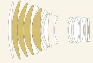 de même type que le 800 précédent (5 éléments en 3 groupes), mais moins lourd (11 kg contre 15) !