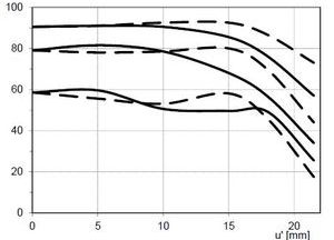Les courbes FTM montrent que le Distagon ZM 35 mm permet de forts agrandissements. À f/1,4 on n’est pas loin des performances d’objectifs de 50 mm à f/4,0.2 Cf la courbe de plus haute fréquence, représentée par la paire la plus basse sur le graphe (contraste des détails les plus fins) :3